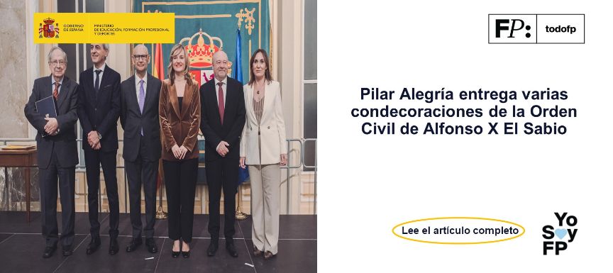 La ministra de Educación, Formación Profesional y Deportes, Pilar Alegría, entregó el pasado 19 de diciembre las condecoraciones de la Orden Civil de Alfonso X el Sabio al ex secretario de Estado de Educación, José Manuel Bar, la ex secretaria general de FP, Clara Sanz, el ex subsecretario del Ministerio, Liborio López, al escritor y filólogo José Carlos Mainer y al director del IES Las Musas de Madrid, José Antonio Expósito.