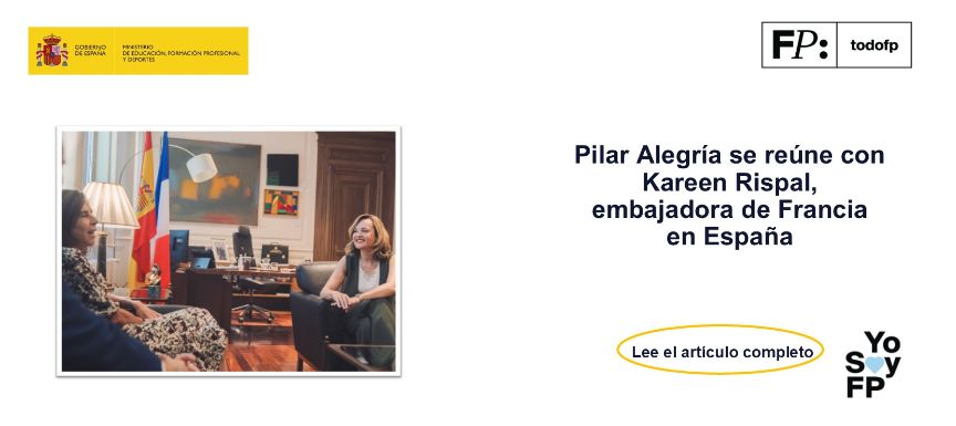 La ministra de Educación, Formación Profesional y Deportes, Pilar Alegría, se ha reunido este jueves con Kareen Rispal, embajadora de Francia en España, en la sede del Ministerio. Durante el encuentro, Alegría y Rispal han abordado los proyectos de colaboración educativa establecidos entre ambos países.