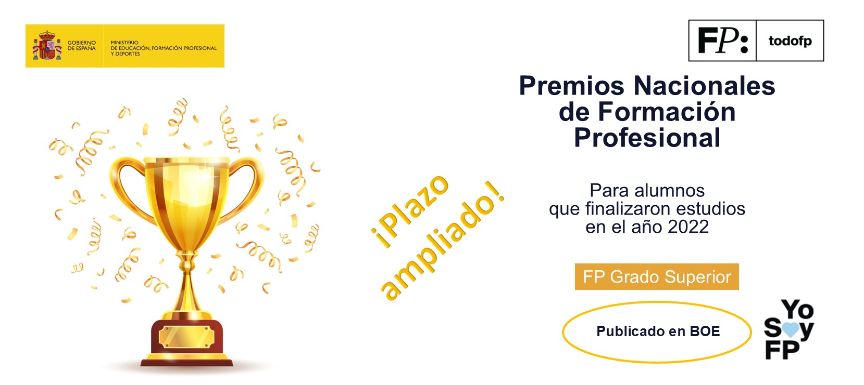 Con fecha de 17 de abril, se publicó en el Boletín Oficial del Estado (BOE) la corrección de errores del Extracto de la Resolución de la Secretaría General de Formación Profesional de fecha 03 de abril de 2025 por la que realiza la convocatoria en 2025 de los Premios Nacionales de Formación Profesional de Grado Superior para los alumnos que finalizaron estudios en el año 2022.